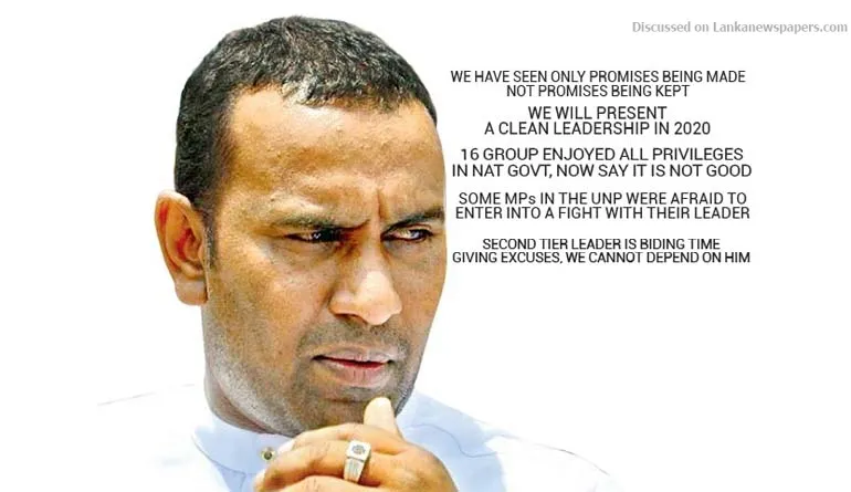 Badulla District Member of Parliament Chaminda Wijesiri said Ranil broke promises and took them for a ride. “He must also stop cheating the country,” he added. Excerpts: You have been in Parliament only for a short time but you are trying to stage a revolution. What actually is this revolution? A: We built up our political lives with the vote of the provincial people.We have to respond to their demands. What we have to always do is to engage in politics on behalf of those people. We are not used to doing politics hoodwinking the people. What we do is to fight for the needs of those people and get those needs for them. It is this change that you all see as a revolution. Having become the Chairman of the Pradeshiya Sabha and the Mayor we got the people’s mandate to enter Parliament. The people have placed their trust in us. Although it is said that the programme launched by the United National Party (UNP) to develop the village is a success, actually it has not been successful. It’s not practical, isn’t that so? A: Actually, it’s not practical. It’s to make a real change that we came to power on 8 January 2015. We haven’t been able to keep the promises. Instead I see the 8 January programme as a programme that has crashed. When the journey that you were to go on, by forming a Government on your own has got messed up, trying to go on a joint journey, isn’t it just for lies that you shout now? A: Not shouting, what we said then and are saying now, is to go for a Government of our own. Yahapalanaya and National Government are good as concepts but are not practicable. Who is making this Government not practicable? When we of the UNP were trying to run the country, according to the promises we gave, the Sri Lanka Freedom Party (SLFP), led by the President who got himself elected by us, is pulling our leg. What the Group of 16, who as long as they were in the Government, did was to enjoy all the privileges of the National Government; but, they now say the National Government is not good. That itself shows that the National Government cannot be carried on. The National Government is like a scarecrow. People will get scared if it is planted in the field. If the country is to be run properly a Government must be formed by the UNP, alone. I told this story to the leader also. Did the leadership accept the story? A: No. But we stick to the view that we must go it alone. The SLFP says it will leave the National Government. If that happens, can the UNP go on a journey of its own in 18 months? A: Yes. Definitely, that period is enough. We can go on this journey, devoid of fraud and corruption, with a set of efficient officials. That will be a team who will think about the people and work for the country. So, if we go on a journey of our own from now itself we can reach our targets. The more we delay the less time we will have. The result of this running out of time will affect generations to come. Gotabaya Rajapaksa is getting ready to enter the 2020 Presidential contest via Viyathmaga. Why doesn’t the UNP have such a vision? A: The fact that the UNP doesn’t have such a vision is the problem we have. Those who destroyed this country, in whatever Sil clothes they may come, can’t win again. If the people of the country are trying to go back to that era, that would be the country’s darkest era. However, isn’t it the opinion of the public that the period of the UNP rule was the darkest era? A: It was the UNP Government that accomplished massive development work in the country. A government that finished giant development projects being unable to draw up a programme to go to the people is sorrowful. Is the UNP being cornered? Is it because of the leader that the Party is getting destroyed? A: Yes. That’s why we are fighting. It is because of the fault of the leader that the Party is in such a plight. If the President doesn’t fall in line with the leader’s opinion, we have to take decisions thinking about the Party and the country. We still think our leader will talk directly with the President with regard to the issues at hand and thereafter do what is right for the country. If the leader is not good, isn’t it within the Party that it has to be sorted out? A: Yes. That’s what we are doing. Then why is it said that some of the backbenchers will be joining the Opposition? Is there an attempt to create another force? A: That is not a decision that we took recently. It was taken after prolonged dialogues, lengthy discussions, and revolting within the Party. It is because our voice is not given a hearing that we behave like this. Isn’t this the result of trying to create a crisis within the Party? A: No. We don’t want to create crises within the Party. The Party leadership must understand that. We should be given an opportunity to act according to our conscience. We cannot allow the country and the Party to be destroyed hiding our conscience, especially, thinking that we are protecting the Party leadership. The Party is not our property and we are not the sole owners of the country. It is, thinking about that that we act. That’s why we would walk out. How many in the UNP will walk out? A: Can’t say, as to how many, as yet. Are all the backbenchers supporting the No-Confidence Motion in this group? A: No. Not all of them. Some who were in the struggle betrayed it for various bonanzas and privileges. But the majority are with us. How many? A: I can’t say about it, yet. The majority are backbenchers. A few of this group walked out during the Party’s Parliamentary Group meeting. It was charged with emotion and with sadness and frustration that the backbenchers spoke at that meeting. So, at that meeting, it was an unprecedentedly high outburst in expressing views. Are there also Ministers supporting you? A: Yes. There are, front row and second row Ministers supporting us. Will those leaving the UNP join the Lotus Bud or the SLFP or as former Minister S.B. Dissanayake s