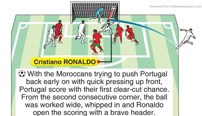 Cristiano Ronaldo continued his sensational start to the World Cup with the winner as Portugal knocked Morocco out of the tournament yesterday. All eyes at the Luzhniki Stadium were on the Real Madrid star after his hat-trick in Portugal's opening game with Spain and, typically, he did not disappoint. It took the captain only four minutes to make his mark in the way Morocco had feared, diving to get on the end of a Joao Moutinho cross and planting an unstoppable header into the net. Ronaldo's goal put the European champions top of Group ‘B’ and extended his lead as the top scorer in Russia in the race for the Golden Boot. Morocco, who last week failed in their bid to host the 2026 World Cup, became the first team to be eliminated from this one with one Group ‘B’ game to go - but they did not go down without a fight. Backed by thousands of noisy fans, who packed one end of the ground, they created enough chances to earn at least a draw - and would have got something out of the game with better finishing. Too many of their shots flew wide, however, and the one time the North Africans did find the target with an effort of note, new Wolves keeper Rui Patricio produced a brilliant one-handed diving save to keep out Younes Belhanda's header. The North African Nation, beaten 0-1 by Iran in their opening game are playing at the World Cup for the first time in 20 years.