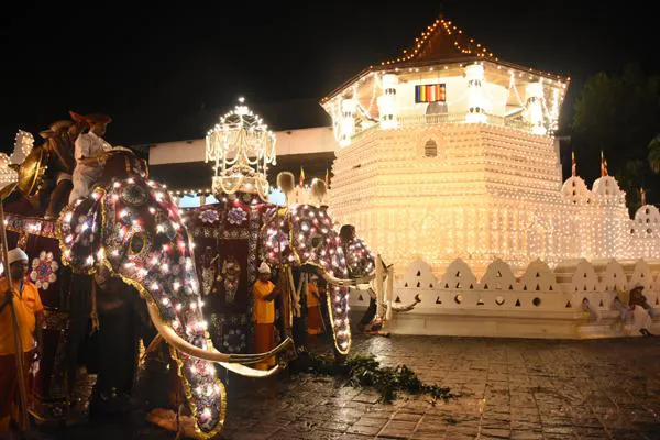 The final "Randoli Perahera" of the historic "Sri Dalada Maligawa"of Kandy paraded the streets last night (3). The picture shows ceremonial tusker '...