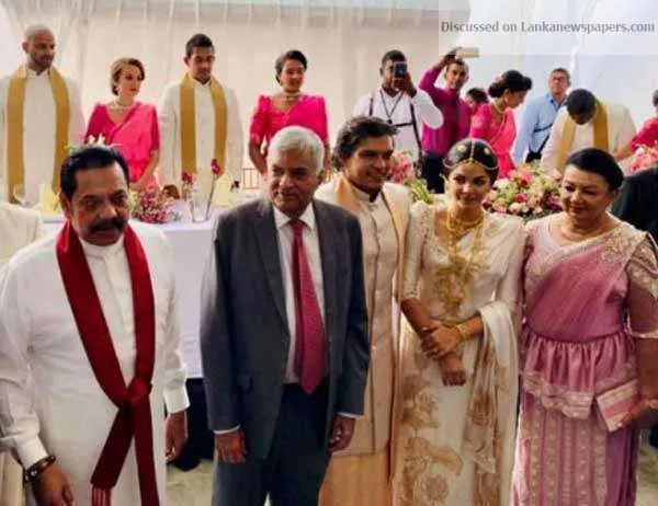 Former President and Opposition Leader Mahinda Rajapaksa’s youngest son Rohitha tied the nuptial knot with Tatyana Livera yesterday amidst a disting...