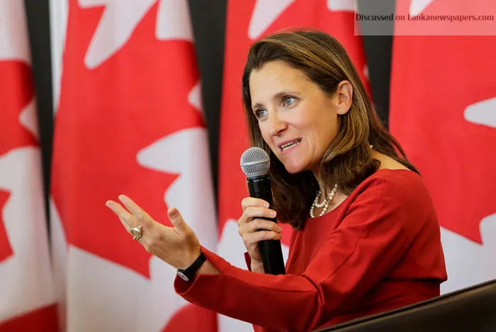 The Canadian government said it was deeply concerned by the recent inter-communal violence in Sri Lanka and urged all sides to engage in inclusive dialogue and exercise restraint to ensure peace and stability. Canadian Foreign Affairs Minister Chrystia Freeland said; “Canada is deeply concerned by recent inter-communal violence in Sri Lanka, in which Muslims were targeted. Canada urges all sides to engage in inclusive dialogue and exercise restraint to ensure peace and stability. We call for an immediate end to hate and misinformation campaigns inciting sectarian violence. “Canada welcomes the Government of Sri Lanka’s condemnation of the violent acts. Canada calls on the government to ensure the safety and security of all minorities, to protect human rights and fundamental freedoms for all and to hold those responsible for the violence accountable. As we said at the United Nations Human Rights Council last month, frustrations persist among those trying to heal the wounds of Sri Lanka’s civil war. Ensuring that diversity and pluralism are valued is critical to the work of reconciliation in Sri Lanka.”