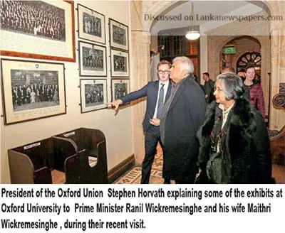 Prime Minister Ranil Wickremesinghe says that a Truth and Justice Commission will be established early next year, as a follow up to the Missing Persons Commission. The PM said so, answering questions posed by the President of the Oxford Union Stephen Horvath and the audience during his recent visit to the Oxford University. Wickremesinghe had earlier delivered a speech on the topic "Geopolitics of the Indian Ocean Region", at the Oxford University Union Chamber. When told that normalcy had not returned nearly a decade after the war with the LTTE had ended, the PM said that as a co-sponsor of the UNHRC Resolution ‘Promoting Reconciliation, Accountability and Human Rrghts in Sri Lanka’, along with the US Britain, Montenegro and Macedonia in September 2015, Sri Lanka had set up a Missing Persons Commission and a Truth and Justice Commission was slated for enactment early next year. The strength of the army had been reduced and Sri Lankan military personnel were now conducting peace keeping operations in Mali, PM Wickremesinghe noted, adding that the reconciliation and rehabilitation process was by and large progressing satisfactorily. He admitted that some small gangs were operating in Jaffna, but the Tamils did not have an issue with the Army. A majority of the civilian lands that the military had occupied during the war, out of national security considerations had been returned and India was developing the Kankesanthurai Harbour, the Prime Minister added. He stressed that there was no need for foreign intervention in Sri Lanka to investigate allegations of war crimes against the security forces and the LTTE. "Our government has since assuming office on January 15, 2009, restored democracy, the independence of public institutions including the judiciary and police, addressed to a large extent reconciliation issues, rehabilitation of the war affected." Foreign assistance was welcome, but it would be better for the war crimes accusations to be investigated by the Sri Lankan judiciary, Wickremesinghe said. "Anyone is free to come and observe the proceedings. In keeping with UN resolutions, we report to Geneva of the progress made on transitional justice, reconciliation, reparations, rehabilitation etc. Our next report is due in March 2019." The Prime Minister also visited the London Stock Exchange to launch the days trading and promote investments in Sri Lanka. Among those present on the occasion were Chief Executive of the London Stock Exchange David Schwimmer, the British Prime Minister’s Trade Envoy to Sri Lanka, UK parliamentarian Ranil Jayawardena and State Minister of Finance Eran Wickremeratne and Sri Lanka’s Acting High Commissioner to the UK Sugeeshwara Gunaratna, A representative gathering was shown an impressive presentation on the opportunities available in Sri Lanka. The Sirisena- Wickremesinghe governments "Vision 2025 " programme, which includes increasing Foreign Direct Investments to USD 5 billion per year, doubling exports to USD 20 billion per year, raising per capita income to USD 5,000, creation of one million jobs, Sustainable Livelihoods etc., were explained in detail to the audience.