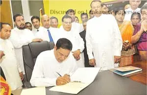 Galle District MP Piyasena Gamage yesterday took up responsibilities as State Minister of Youth, Women and Child Affairs at Sethsiripaya, Battaramulla. Among those present were President Maithripala Sirisena and ministers, Nimal Siripala de Silva, Mahinda Amaraweera, Duminda Dissanayake and S.B. Dissanayake. Gamage was appointed from the Galle District list in the wake of Geetha Kumarasinghe losing her seat in Nov 2017 over having dual Sri Lankan and Swiss citizenship. In terms of the 19th Amendment enacted in 2015, dual citizens aren’t eligible to contest either presidential or parliamentary polls.