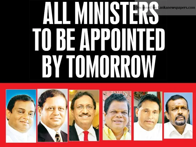 United People’s Freedom Alliance Parliamentarian John Seneviratne said the Government has decided to appoint the 30-Member Cabinet of Ministers and 40 Deputy and State Ministers portfolios tomorrow (10). Meanwhile, two Cabinet Ministers and five State Ministers were sworn in before President Maithripala Sirisena yesterday (8). MP Susil Premajayantha was appointed Minister of Public Administration, Home Affairs, and Justice. Bandula Gunawardane was appointed Minister of International Trade and Investment Promotion. S. M. Chandrasena was appointed State Minister of Social Empowerment. Lakshman Wasantha Perera was appointed State Minister of International Trade and Investment Promotion. Salinda Dissanayake was appointed Minister of Indigenous Medicine. C. B. Ratnayake was appointed State Minister of Transport. Anura Priyadharshana Yapa was appointed State Minister of Finance. As of yesterday, 21 Cabinet Ministers, nine Deputy Ministers and 15 State Ministers have been appointed.