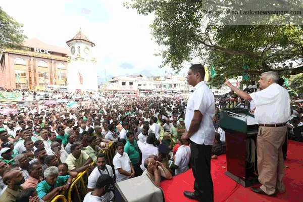UNP Leader Ranil Wickremesinghe addressing a rally in Kandy today. He also held discussions with Mahanayakas of the Asgiriya and Malwatte chapters during the visit to Kandy.