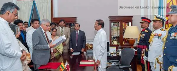 UNP Leader Ranil Wickremesinghe sworn in as the Prime Minister before President Maithripala Sirisena this morning.