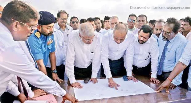 Prime Minister Wickremesinghe and Ports Development Minister Sagala Ratnayaka taking a look at the development plan Pic by Pradeep Pathirena Prime Minister Ranil Wickremesinghe said step would be taken to develop a vibrant economic hub around the Kankesanthurai harbour that would be transformed into a commercial port with Indian assistance. Wickremesinghe visited the Kankesanthurai area on Thursday to discuss the implementation of the US$ 45.27 million development project for the KKS harbour. The Prime Minister instructed officials to work expeditiously to finalize land acquisition and other preliminary work of the three-year development plan. Wickremesinghe, in his capacity as the Northern Province Development Minister, has also obtained Cabinet approval for the development work of the Kankesanthurai harbour. Ports, Shipping and Southern Development Minister Sagala Ratnayaka tweeted that the Kankesanthurai harbour, currently operated by Sri Lanka Navy, would be transformed into a port that can handle general cargo ships. The transformation of the port is aimed to boost import and export sectors while generating a large number of direct and indirect employment opportunities. “Under this plan, the harbour’s basin will be deepened to 8 metres allowing it to handle general cargo ships. The current breakwater will be completely replaced as part of the transformation. One existing pier will be completely rehabilitated and a new pier will also be constructed,” Ratnayaka stressed. The Sri Lanka Ports Authority (SLPA) has already begun initial work on a 15-acre area within the KKS harbour premises, and it is expected to be expanded to a 50-acre area under the next phase.