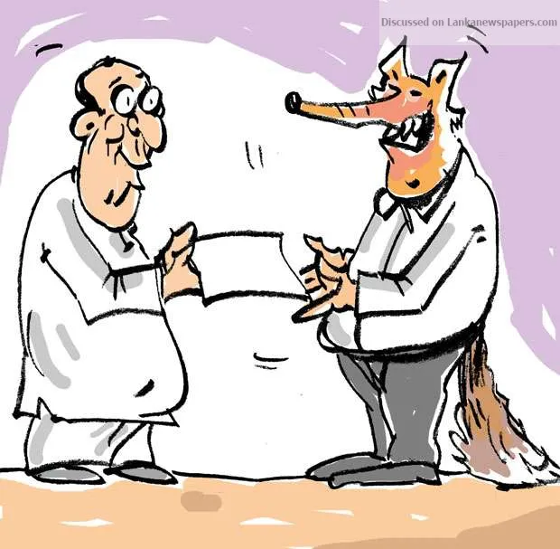 An accused in a floating armory corruption case which created a big sensation in the country has now been appointed as a private secretary to a very high political authority, they say. This person who is among several others accused of causing a massive financial loss to the government had been once a first citizen in a township. The political authority who has offered the appointment to the accused continues to go around the country vowing to mete out the maximum punishment to the corrupt elements in the country.