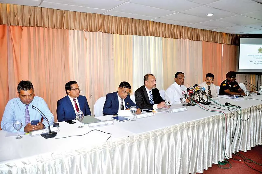 From left: Board of Airline Representatives Chairman Dimuthu Tennakoon, Immigration and Emigration Department Controller General Pasan Ratnayake, SLTDA Director General Upali Ratnayake, SLTDA Chairman Johanne Jayaratne, Tourism Development, Wildlife and Christian Religious Affairs Minister John Amaratunga, Ministry Secretary S. Hettiarachchi and Sri Lanka Army Director Operations Upali Rajapaksa Pic by Nisal Baduge Tourism Development, Wildlife and Christian Religious Affairs Minister John Amaratunga plans to meet the Russian ambassador to Sri Lanka in an attempt to lift the travel advisory issued by the Russian Federation on visiting Sri Lanka, in the aftermath of the Easter bombings. Amaratunga emphasised that the travel advisory stands irrelevant as of now as Sri Lanka has even lifted the Emergency Law on the assurance given by the security forces on the security situation of the country. “Despite the travel advisory, Russian travellers keep visiting Sri Lanka,” Amaratunga told reporters in Colombo. According to Sri Lanka Tourism Development Authority (SLTDA) statistics, Russia is among the handful of tourism source markets of Sri Lanka, which has shown a positive growth this year. Tourist arrivals from Russia have increased 16.4 percent year-on-year (YoY) to 45,722 up to July, this year. Russian tourist arrivals in July also recorded a YoY growth of 11.9 percent. Sri Lanka’s tourism authorities expect the total tourist arrivals to recover to the 2-2.1 million range by the end of this year. SLTDA Chairman Johanne Jayaratne estimated that this month’s tourist arrivals would reach 160,000-170,0000, backed up the Global Bohra Convention, which is to be held in Colombo early next month. As of August 26, over 112,000 tourists have arrived in Sri Lanka during the month, led by visitors from India, the United Kingdom and China. Jayaratne expects tourist arrivals to see a significant boost as participants of the Bohra Convention are starting to arrive in Sri Lanka. Despite the faster recovery in terms of arrivals, he noted that recovery in revenue would take a longer time, partly due to discounts. The government has granted a number of concessions to airlines, hotels and tour operators to offer special discounted promotional packages to tourists. SriLankan Airlines stated that the national carrier is offering 10-15 percent discounted air tickets to India and China by utilising the concessions. According to Board of Airline Representatives Chairman Dimuthu Tennakoon, SriLankan Airlines flights to India and China are operating at full capacity as many students are travelling to Sri Lanka during the summer break, taking advantage of the promotional packages. In particular, he said that the air traffic to India has seen a significant demand with the launch of the special promotional packages. “We had to provide additional capacities to flights from India but our flights are still full,” he said. Further, Tennakoon noted that several Chinese carriers including Air China, Chine Eastern and China Southern are scheduled to resume their flights from October, this year.