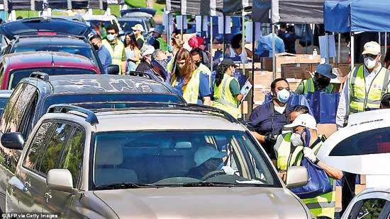 The City of Angels’ reputation for being one of the wealthiest parts of the US - home to the Hollywood elite - appears to be a distant memory, as residents waited to access food to be able to feed their families.