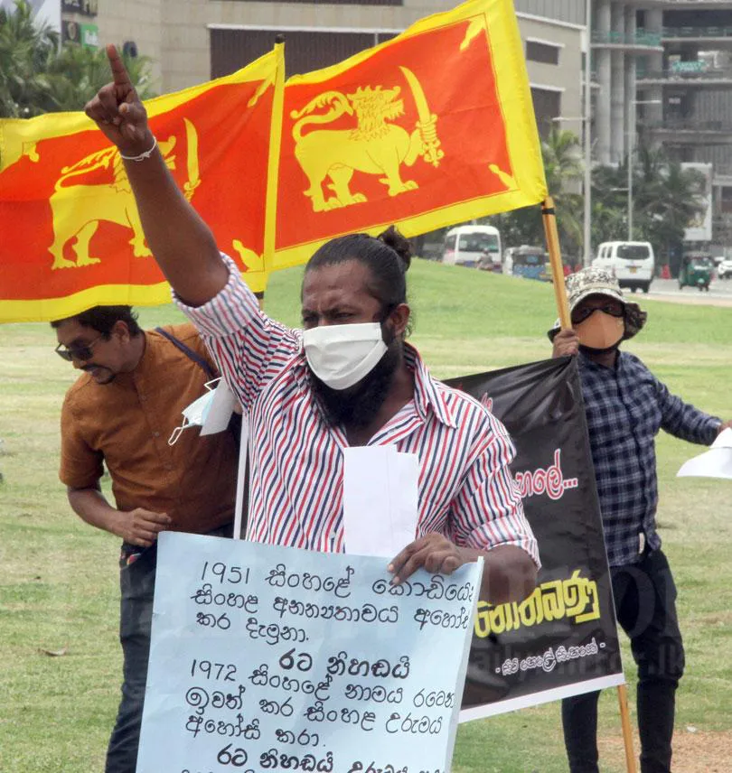 A protest organised by a group by the name 'Siw Hele Sinhayo' against the decision to remove references to race and religion in birth certificates was held at the agitation site in Colombo today.