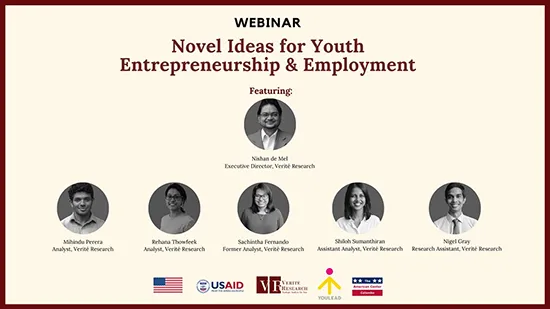 The United States has supported Verité Research in producing its latest youth labor market assessment. The findings were presented to the public via a webinar titled, “Improving Youth Employment & Entrepreneurship in Sri Lanka: Insights & Strategies” on November 19. It was supported under the U.S. government’s development arm the United States Agency for International Development Agency (USAID)-funded youth skills development and entrepreneurship project, YouLead. The assessment focused on developing innovative methods to improve employment and entrepreneurship among youth in Sri Lanka. Findings focused on overcoming challenges relating to youth unemployment and low female participation in the workforce and to promote entrepreneurship among youth. USAID Mission Director Reed Aeschliman noted the importance of strengthening the entrepreneurial mindset that can lead to more gainful and self-employment of youth in Sri Lanka. He further emphasized the importance of increasing women’s participation in the economy and taking effective steps to create more economic opportunities for youth to foster sustainable and inclusive economic growth. Executive Director Verité Research Dr. Nishan de Mel, who led the research team, noted that this study aimed to tap into the extensive body of research available to devise quick and practical solutions the private sector and other stakeholders can use to unlock employment and entrepreneurship opportunities for youth in Sri Lanka. The report’s key recommendations are: 1. Moving youth to Own-Account Work (OAW) – The assessment recommends re-thinking the path to youth entrepreneurship by encouraging and supporting youth to become own-account workers before becoming fully-fledged businesses. Verité estimates that if Sri Lanka can successfully promote OAW among youth in Sri Lanka, through awareness building about OAW and supporting access to markets via the usage of digital platforms, the country may see the setup of 216,000 new micro and small businesses in the future. This can also eventually lead to the creation of almost 400,000 new jobs in the country. 2. A case for state supported maternity leave benefits – The assessment proposes Sri Lanka to shift towards a state-supported maternity leave program via tax concessions. That way it will reduce the discrimination that women aged 20-40 years face in the labor market stemming from mandatory employer-funded maternity entitlements. Verité estimates that this could cost as little as 0.25% of tax revenue (Rs 4.2 billion) annually, much less than other government welfare and employment programs. This can lead to increased economic participation by women, helping to inject more income to households, cushioning the impact of post-Covid job losses, and acting as an economic stimulus to the private sector. 3. Engaging disengaged young women: The assessment finds that disengagement from the labor market is a gender problem in Sri Lanka, with 89% of those disengaged being women. However, nearly one out of every three disengaged young women are interested in working and Verité Research proposes implementing Return-To-Work programs with flexible working options to target women who have left the workforce for family-related reasons but are now interested in returning to work. Verité Research estimates that it could lead to the addition of a potential workforce of 243,000 new workers for the Sri Lankan labor market. Charles Conconi, Project Director YouLead, concluded the program by thanking the Verité Research team’s efforts and USAID for supporting this valuable research. He emphasized that Youlead is committed to engage in practical and evidence-based interventions to improve youth entrepreneurship and women’s employment in Sri Lanka.