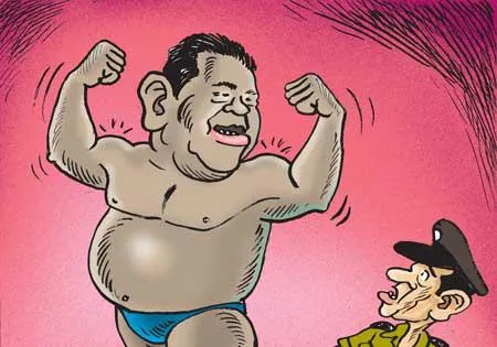 There is a dark stocky Diyawanna political authority that is said to be thick with anti-social elements. A khaki high-up posted A khaki high-up posted to the stronghold of this politico had begun conducting raids on Kasippu and drug dens and illicit gambling places in the area and giving a tough time to all disreputable characters. The political authority being a thick chum of