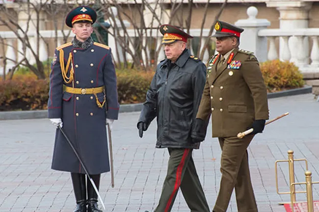 The Commander of Sri Lanka Army General Shavendra Silva, at the invitation of the Commander-in-Chief of the Russian Land Forces, General of the Army, Oleg Salyukov of the Russian Ministry of Defence is currently on an official visit to Moscow. The General of the Russian Army, Oleg Salyukov has formally extended a warm reception to his Sri Lankan counterpart on Monday (25), the Sri Lanka Army said in a statement. Considered to be one of the highest honours, presented in recent times, the formal and elegant Guard of Honour parade with four squads of the Russian Land Forces, together with a Russian Army band distinctively featured the significance and the recognition the Russian Land Forces attach to the visiting military dignitary from Sri Lanka. Just after melodies of Sri Lankan and Russian national anthems were played across the reputed parade ground, and the parade commander reported, the day’s Chief Guest, General Shavendra Silva, together with his host, the Commander-in-Chief of the Russian Land Forces, General of the Army, Oleg Salyukov reviewed the glamorously-dressed troops in the Guard of Honour and took the salute, presented in his honour. Sri Lanka’s Army Chief, following formal honours, was ushered to pay floral tribute to the widely-reputed monument at Alexandrovsky Garden of Moscow Kremlin where the much-respected ‘Tomb of the Unknown Soldier’ stands. After laying a floral wreath, General Shavendra Silva in a solemn moment of remembrance saluted the memory of fallen Russian War Heroes before the visiting Army Chief was invited to the nearby Armoury Museum of the Moscow Kremlin which is regarded as a place of elegant calm in the often hectic city of Moscow. During General Shavendra Silva’s stay in the Russian Federation, he is scheduled to visit the Moscow Higher Combined Arms Command School and meet with its Commandant, Major General Roman Binyukov, Division Commander of the 4th Guards Tank Division in Naro-Fominsk and the Commandant at Mikhailovskaya before he visits the Military Artillery Academy, Military Medical Academy and several other places of military and tourist importance. In February 2020, during a formal visit to Sri Lanka, General of the Army, Oleg Salyukov extended an open invitation for this visit. However, the visit had to be indefinitely postponed due to the outbreak of COVID-19 pandemic and General Shavendra Silva’s commitment to its control as Head of the National Operation Centre for Prevention of COVID-19 Outbreak in Sri Lanka.