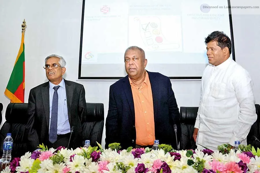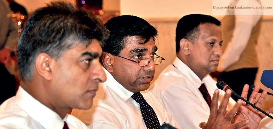From left: Finance Ministry Secretary Dr. R.H.S. Samaratunga, Finance Minister Mangala Samaraweera and Mahaweli Development and Environment State Mini...