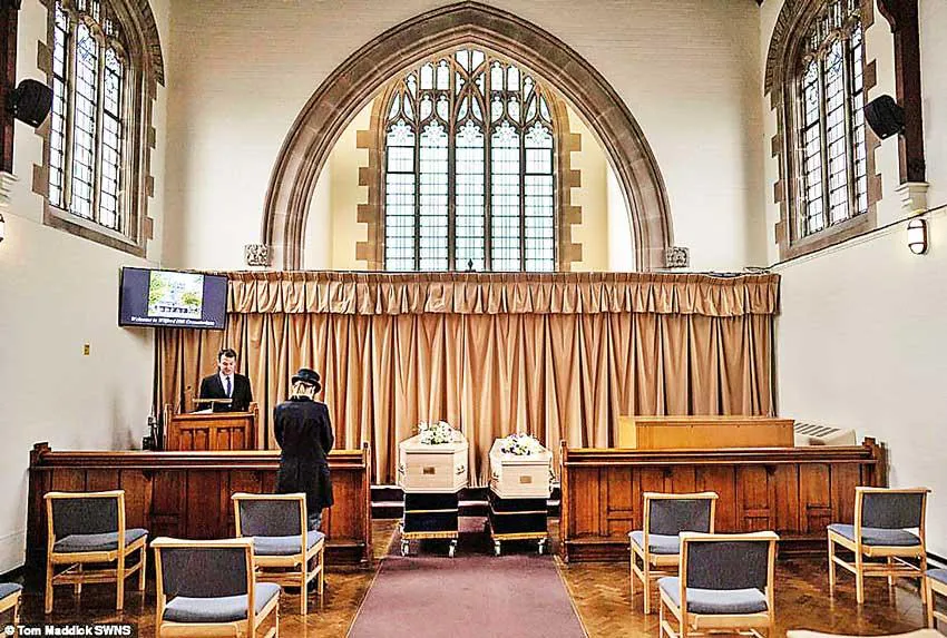A sombre image in a funeral hall of the coffins of an elderly husband and wife who both died from Covid-19 captures the tragic reality of the pa...