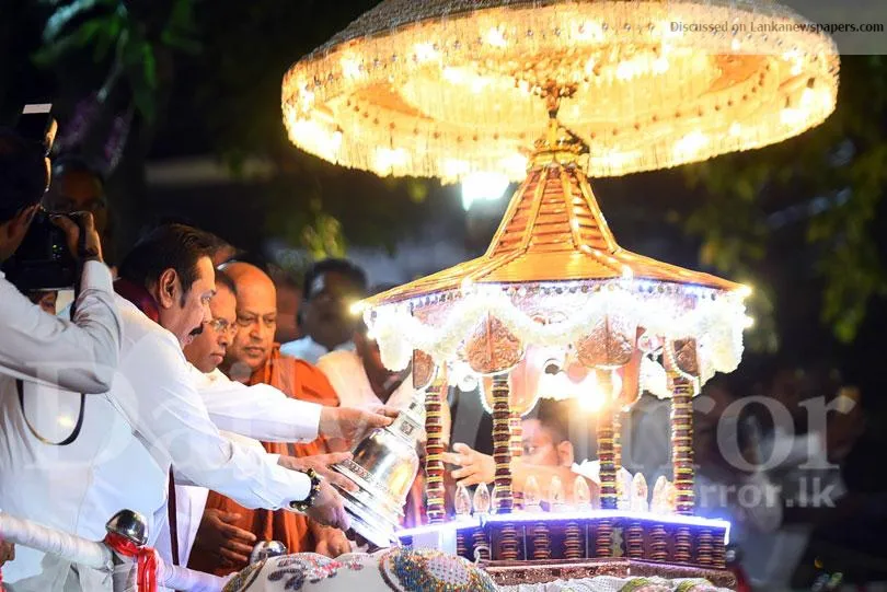 President Maithripala Sirisena and Former President Mahinda Rajapaksa kept the sacred casket on top of the elephant at the inauguration of Gangaramaya...