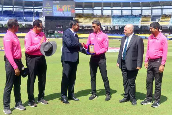 Sri Lanka Cricket felicitated Ruchira Palliyaguruge, who is officiating in his 100th ODI as an on-field umpire during today’s game. Ravin Wickramara...