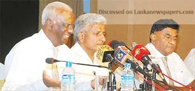 SLC Presidential candidate Jayantha Dharmadasa speaks to the media alongisde his team members Nishantha Ranatunga (Secretary) and K. Mathivanan (Vice-...