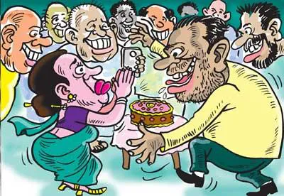 The symbolic cutting of the cake to celebrate the birthday of government Diyawanna politicos in the Number Two’s office has now become a well-establ...