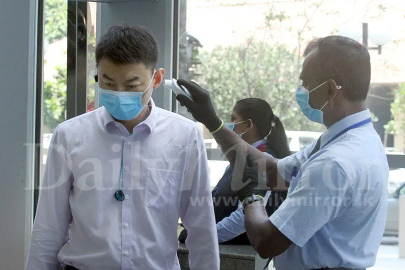 Several State and privates institutes and centres in the Colombo City seen taking precautionary measures to avoid the spread of Covid-19. The picture ...