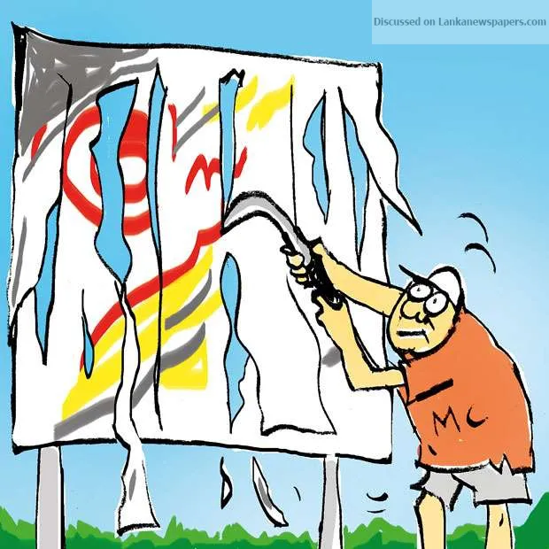 A large hoarding put up to serve a tourism promotion purpose opposite a park in the city had been pulled down and cut into pieces, they say. A provin...