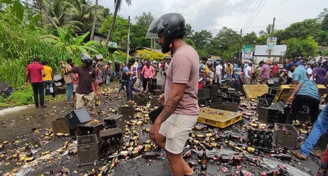 A container truck transporting beer bottles has met with an accident on the Colombo-Ratnapura main road in the Meennana area in Eheliyagoda, completel...