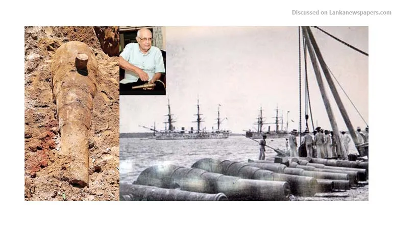 Somasiri Devendra with a replica of a cannon Picture from the past: Cannon being unloaded at the Trincomalee harbour...