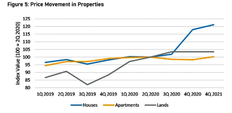Lower interest rates have pushed the demand for housing loans up, resulting in housing prices soaring by over 20% from the 2Q 2020 level which is in s...