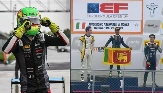 Motopark’s Yevan David won on his Euroformula debut at a damp Monza. The 17-year-old is the first ever Sri Lankan to participate in this category ha...
